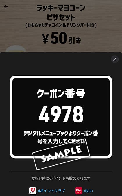 注文時に、クーポン画面を見せて使います。デジタルメニューブックの場合はクーポン番号を入力して使います。