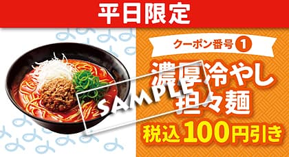 ・最新の公式アプリクーポン(10/15~10/21)では、割引率の高いかけうどんがおすすめのメニューです
